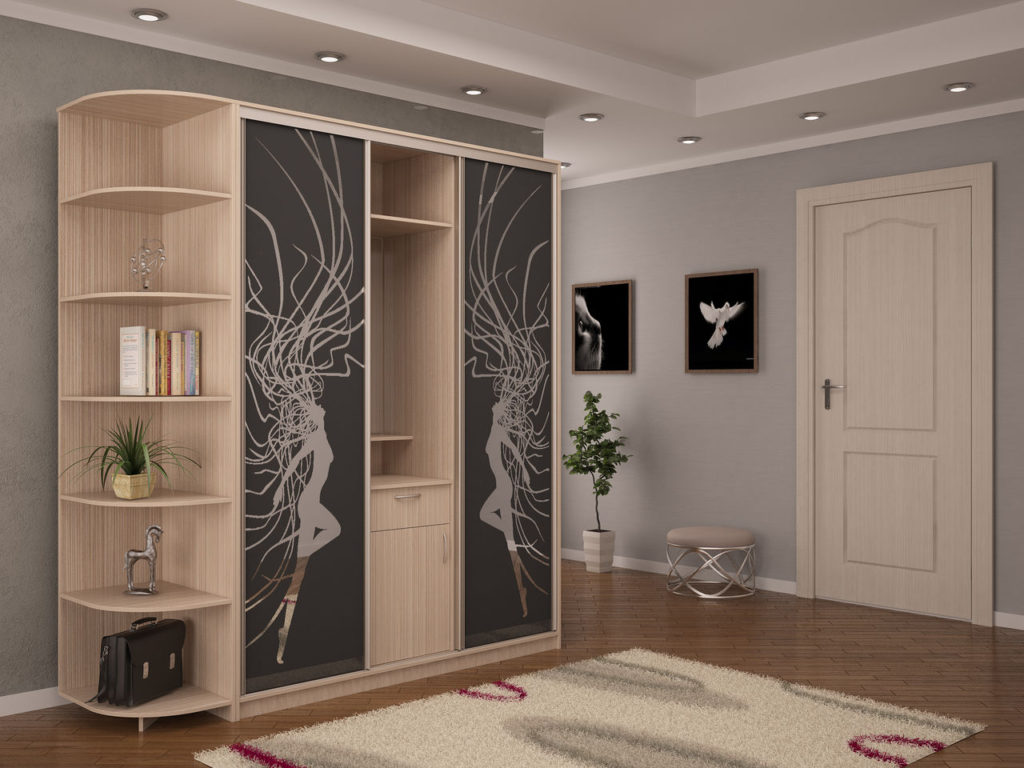 Очень популярным вариантом оформления шкафов-купе, является применение пескоструйных рисунков, гравировки или фотопечати, предоставляющей нанесение самых разнообразных изображений, подходящих под любое интерьерное направление.
