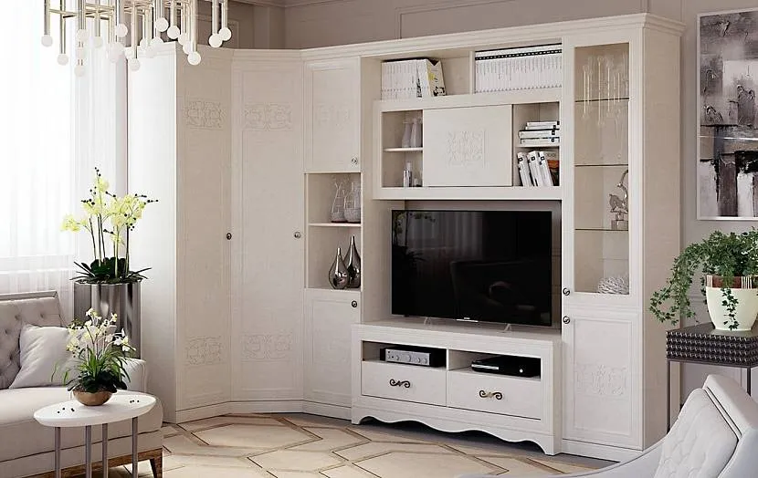 Белый угловой шкаф с местом для телевизораИсточник design-homes.ru