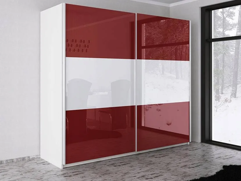 Визуально шкаф заменяет собой целую стену с фотообоями. Вы можете нанести на двери любой рисунок, который вам нравится. Это может быть и фотография из путешествий или другие памятные фото. Сам фасад выполняется в двух вариантах: матовом и глянцевом.