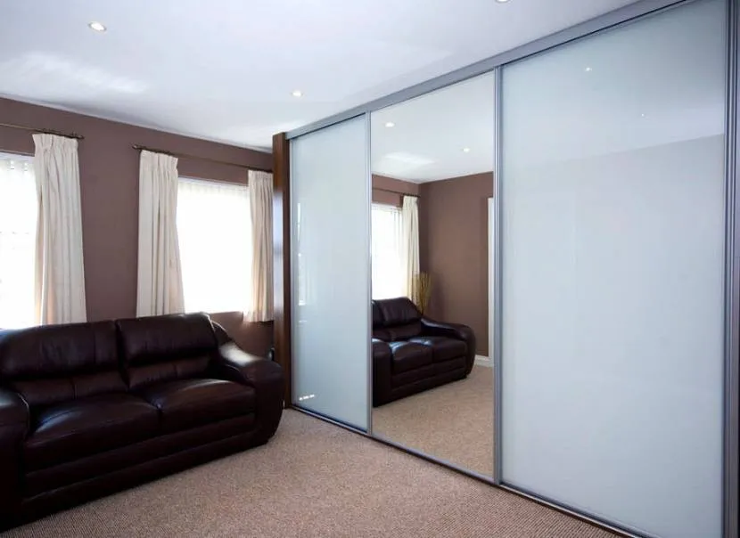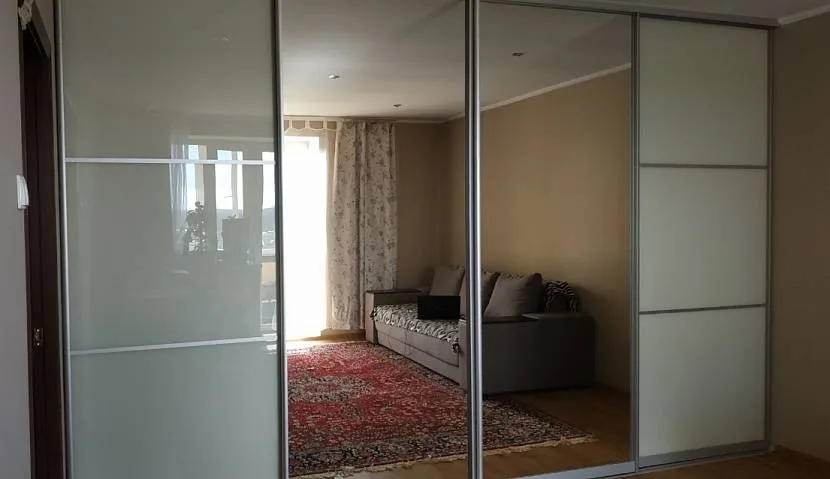 - Створки должны быть глухими либо зеркальными. Сочетание и того, и другого в гостиной выглядит безвкусно, особенно если дверей больше двух.