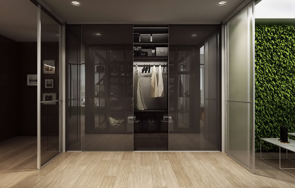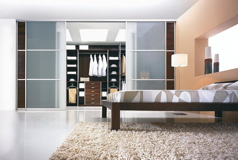 Стеклянные двери в дизайне шкафа-купе