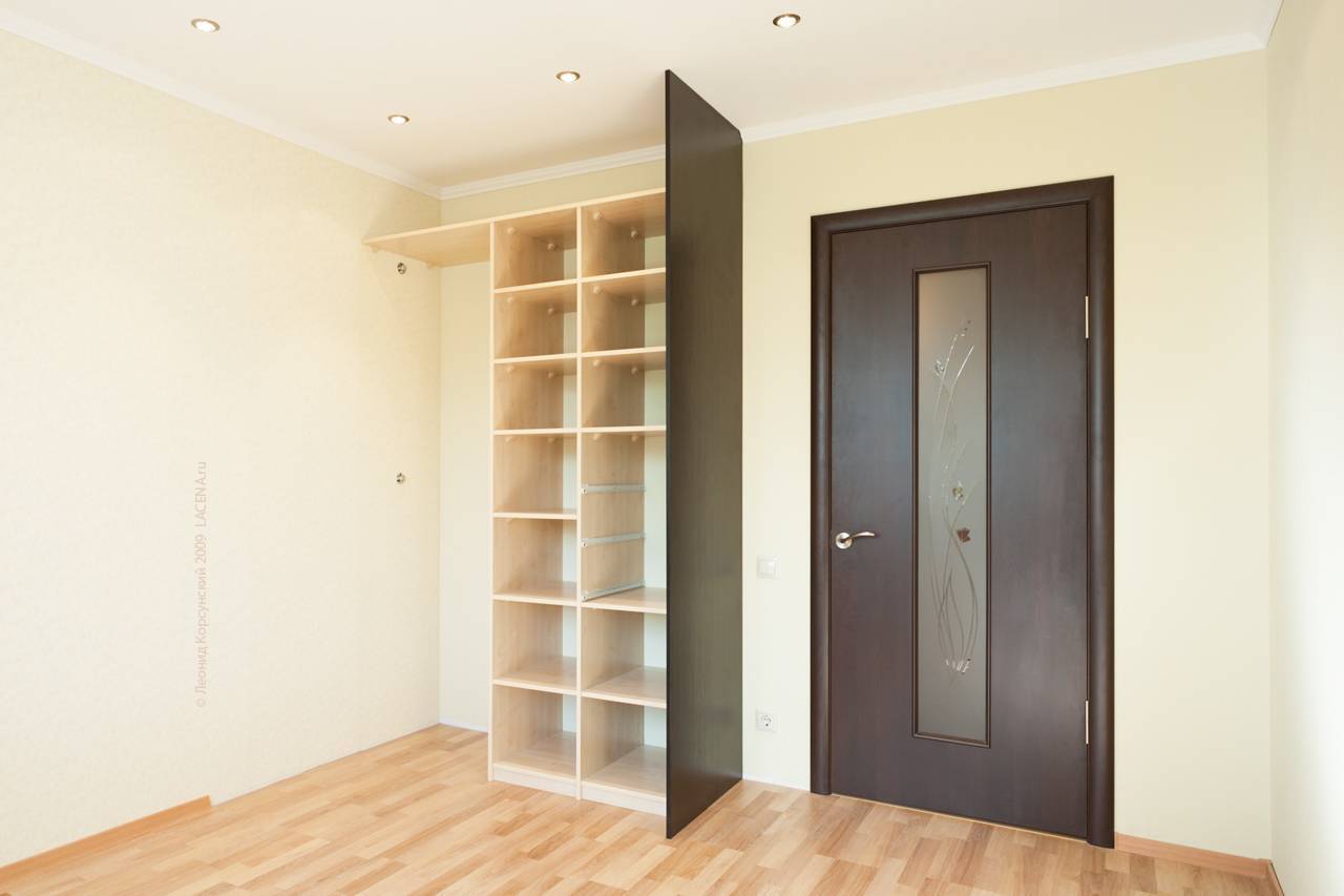 Если у вас маленькое помещение, подумайте несколько раз, прежде чем заказывать трапециевидный или треугольный угловой шкаф. Такие шкафы занимают очень много места, при этом выигранное внутреннее пространство шкафа никак не решить функционально.