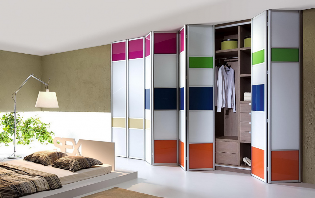 - Со складывающейся системой – изготавливаются из легкого материала. Используются для обустройства больших ниш или средних моделей шифоньеров. Имеют разнообразные тематические рисунки.