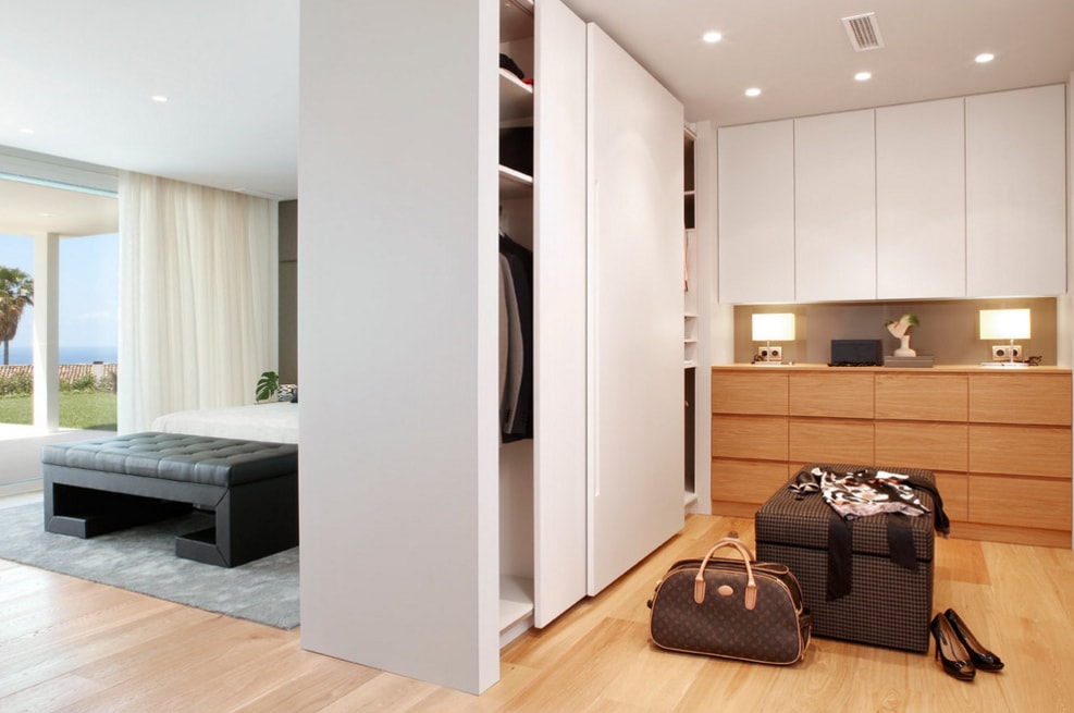 Преимущества встроенных систем перед классическими в том, что они способны осваивать пространство любой конфигурации. Если у вас есть ниши, колонны, углы и прочие архитектурные недостатки, то при помощи гипсокартона и раздвижной системы вы можете даже своими руками превратить этот недостаток в огромное достоинство.