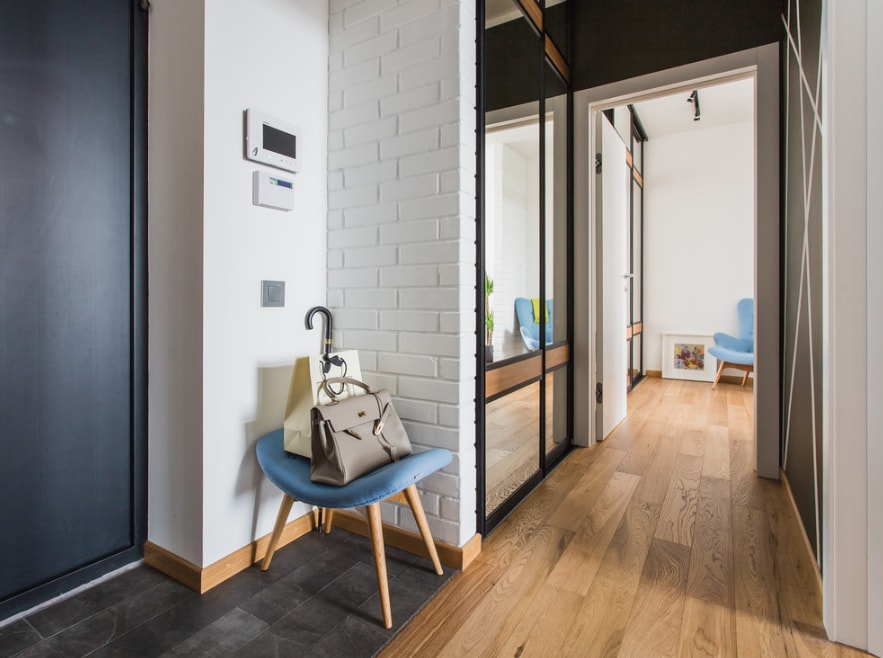 Благодаря этому появляется отличное место для обувания, и, вместе с тем, комната выглядит очень стильно.