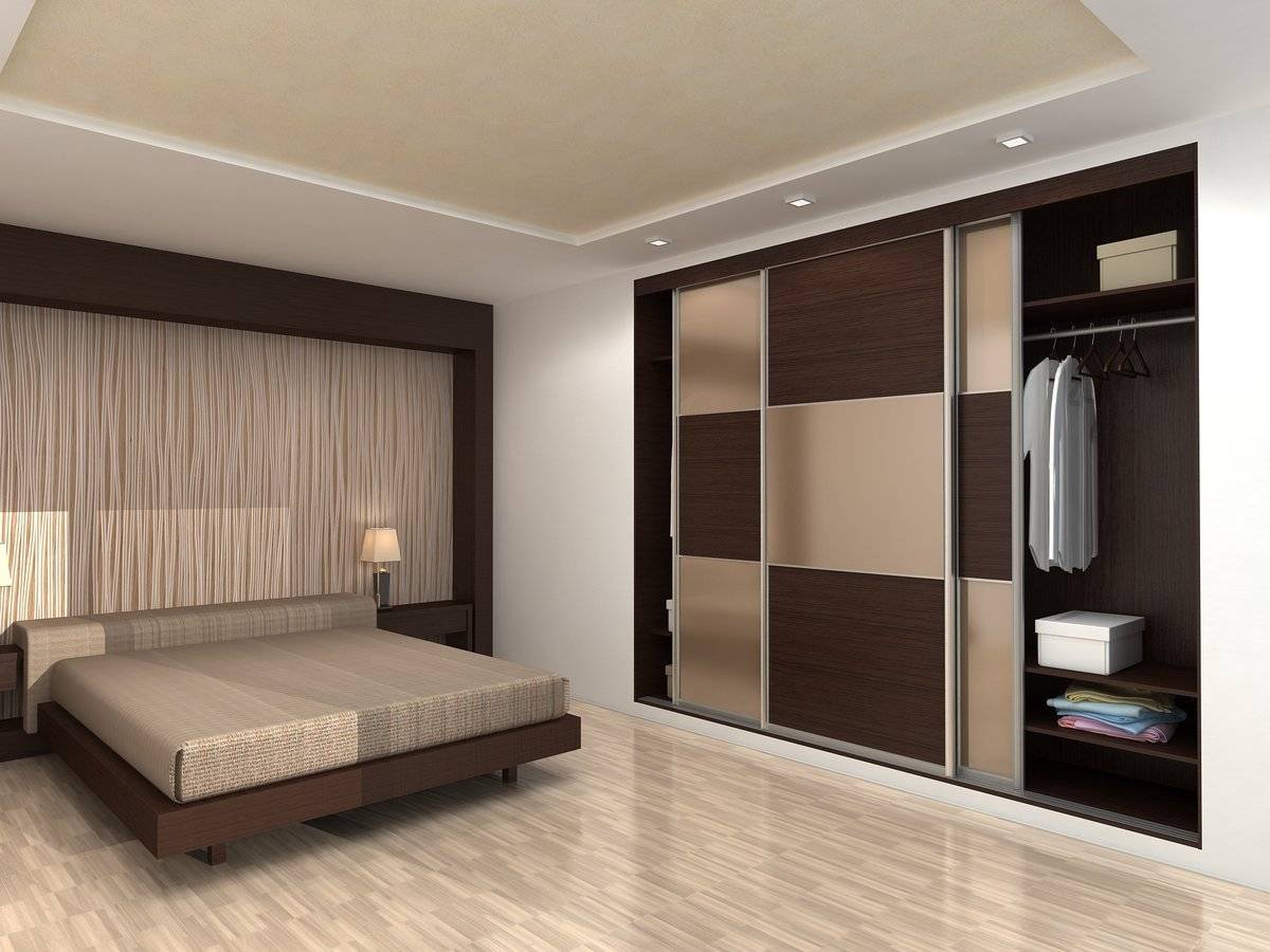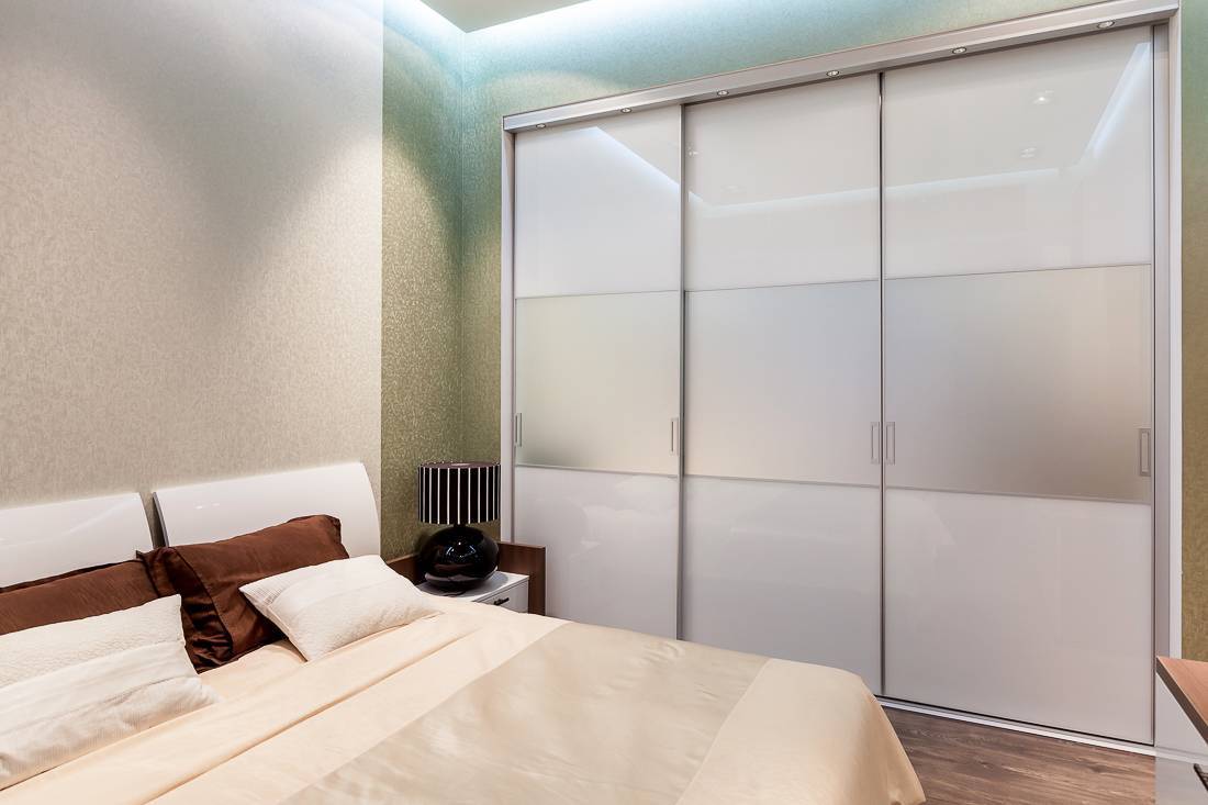 Как видно на фото шкафов в спальных интерьерах, шкаф купейного типа прекрасно вписывается как в большую комнату, так и в небольшое помещение. А все благодаря тому, что удобные двери позволяют более рационально использовать свободное пространство.