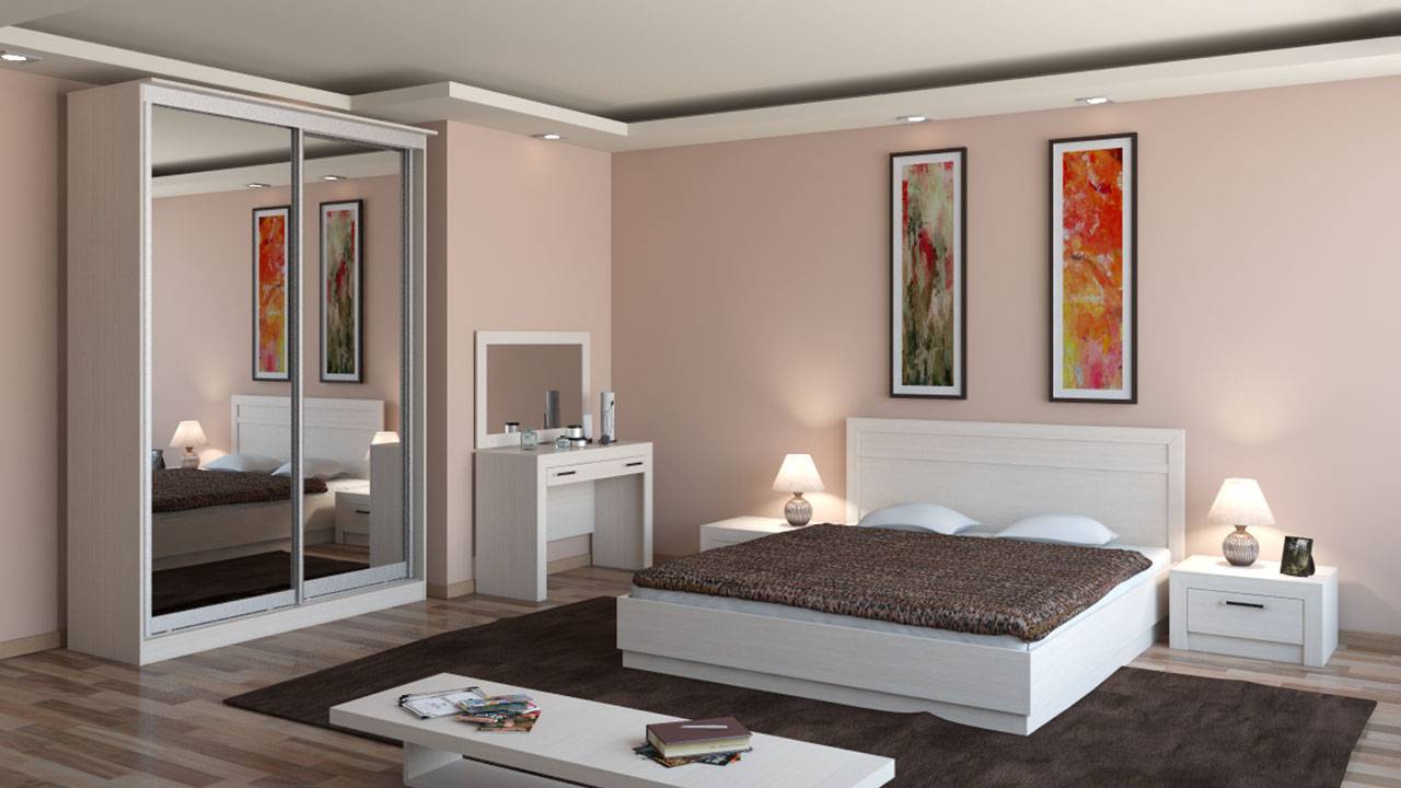 - Универсальный вариант — установка белого шкафа-купе в спальню. Он впишется в любой стиль, не будет визуально уменьшать пространство.