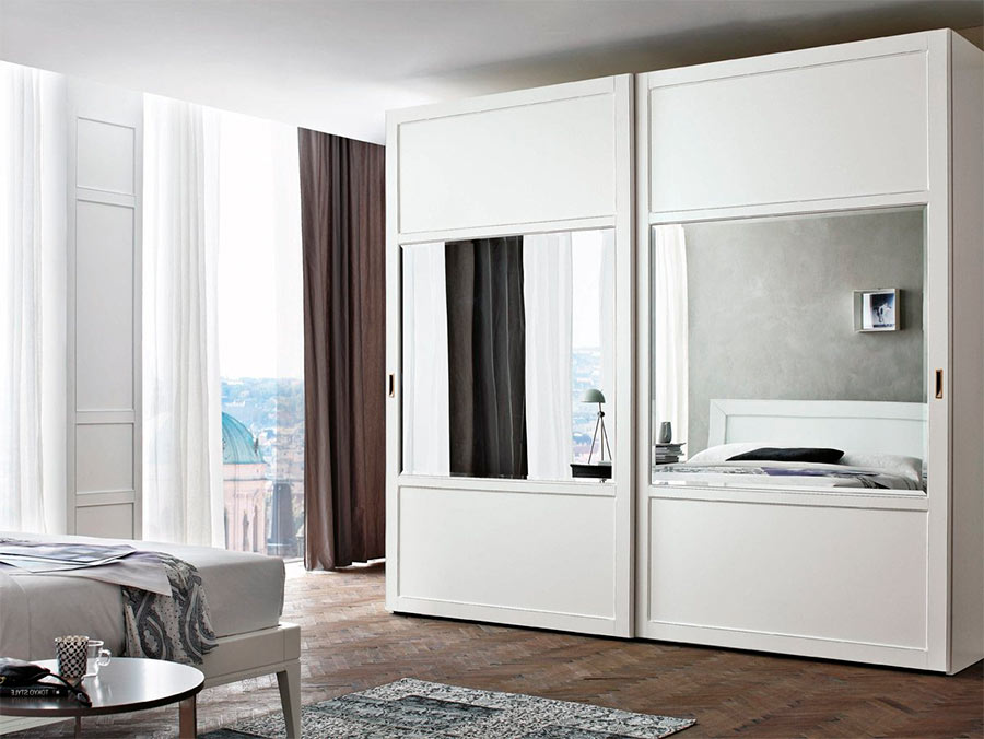 - экономия места — благодаря конструкции двери купе не потребуется дополнительного места для ее открывания, в отличие от обычного шкафа с распашными дверцами рядом с кроватью;
