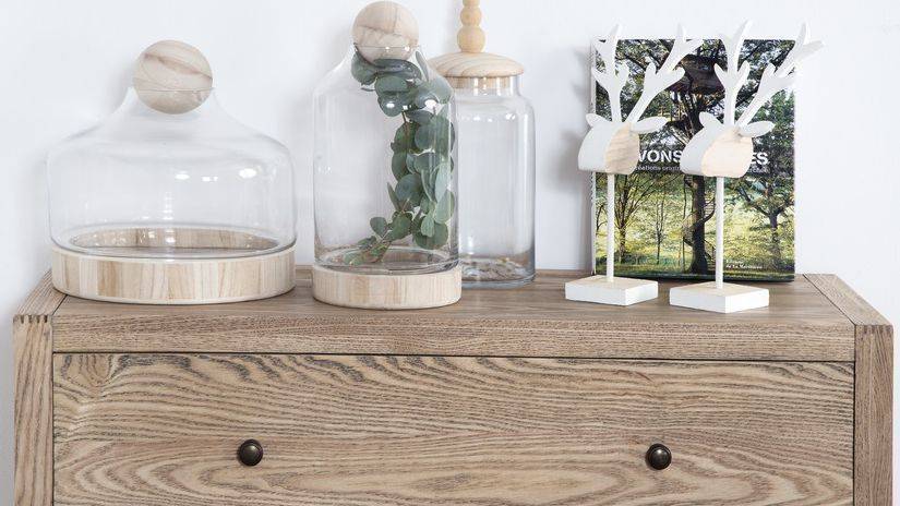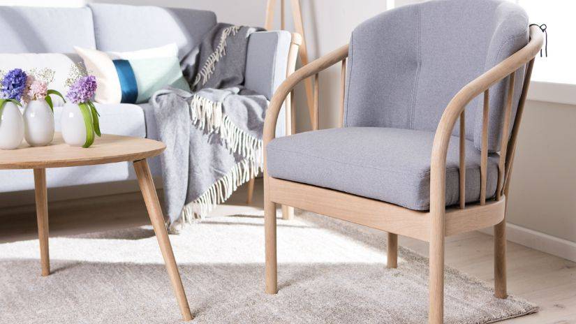 - Материалам корпусной, мягкой мебели. Предпочтение отдается шкафам, столикам, стульям, диванам и креслам, изготовленным из натуральной древесины. Мебель чаще выполняют из сосны, ели, березы, выбеленного дуба.