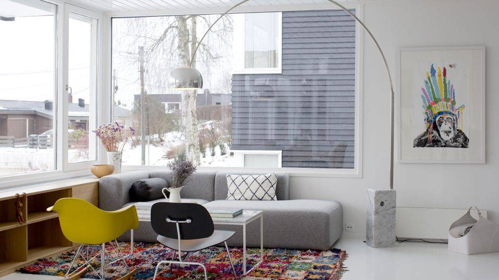 Пятый ингредиент — яркие цветовые акценты. На фоне светлых стен и пола обязательно есть что-нибудь позитивно-яркое. Можно смело брать самые сочные цвета: синий, красный, желтый, зеленый, оранжевый. Чаще всего роль акцента выполняет какой-то текстиль — декоративные подушки, пледы или ковер. Или декор — постеры на стенах, посуда. И даже мебель, например, кресла. У меня лично вызывает недоумение, когда про скандинавские интерьеры говорят, что они выглядят уныло, как больница. Всегда удивляюсь, это где же такие веселенькие больницы? Мы точно о скандинавском стиле говорим? Как он может быть уныл, если он такой позитивный?