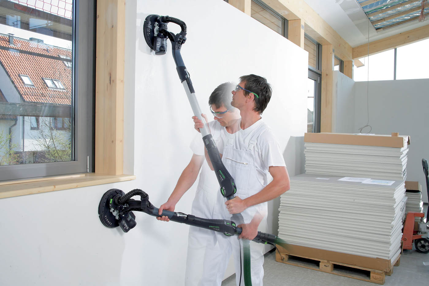 Шлифовка стен после шпаклевки будет проведена быстро и легко, если для этого будет использоваться специальная шлифовальная машинка. Большинство моделей комплектуются необходимыми приспособлениями, позволяющими подключать промышленный пылесос для сбора пыли.