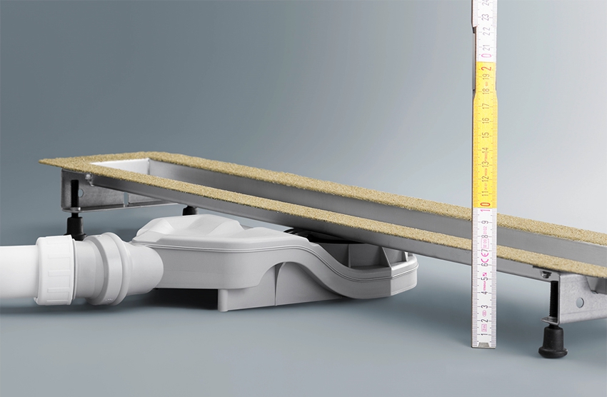 Данная система монтируется прямо в отверстие поддона душевой кабинки, посредством которой вода поступает в канализацию. Обычно их высота не превышает 80-200 мм, хотя эффективность зависит именно от этого – чем ниже установлен трап-слив, тем лучше будет его работа.