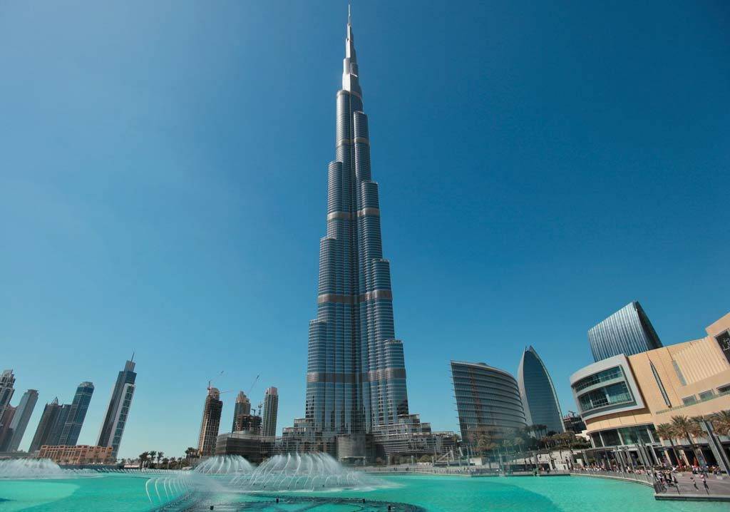 Это самый высокий из ныне существующих небоскрeбов и самое высокое рукотворное сооружение на планете (высота со шпилем — 828 м). Для возведения подобного гиганта архитекторам и конструкторам пришлось изрядно поломать голову над построением инфраструктуры здания. Так как температура в Дубае часто превышает 40 °C, от архитекторов требовалось проведение колоссальных работ по обеспечению микроклимата внутри небоскреба.