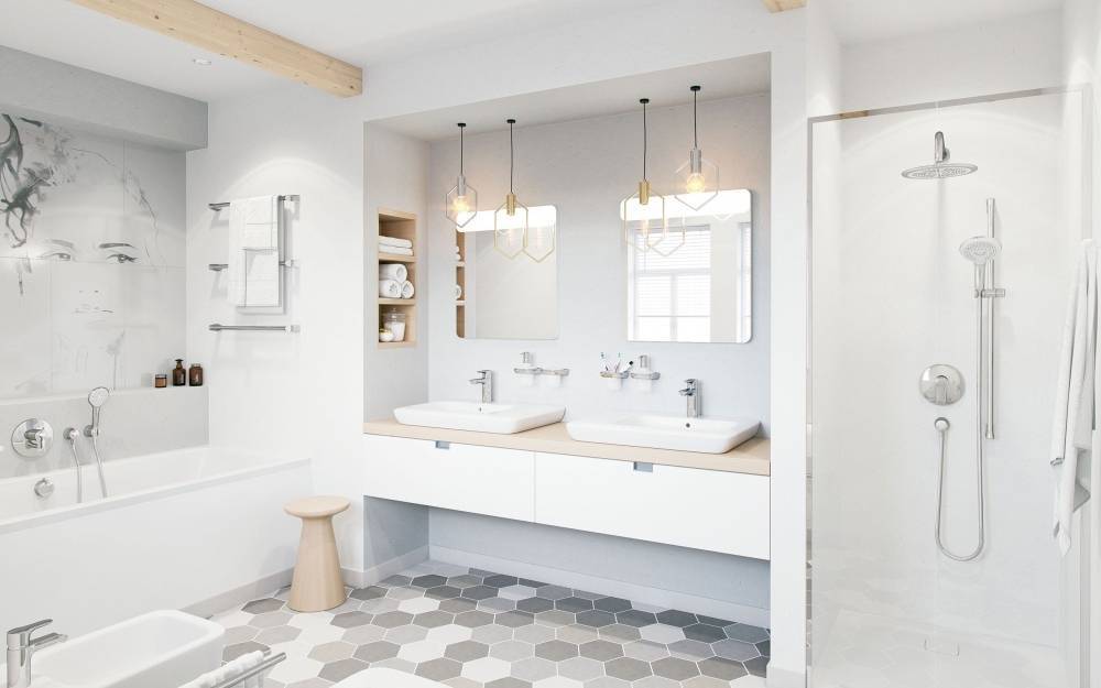 - Расстояния между ванной и раковиной.