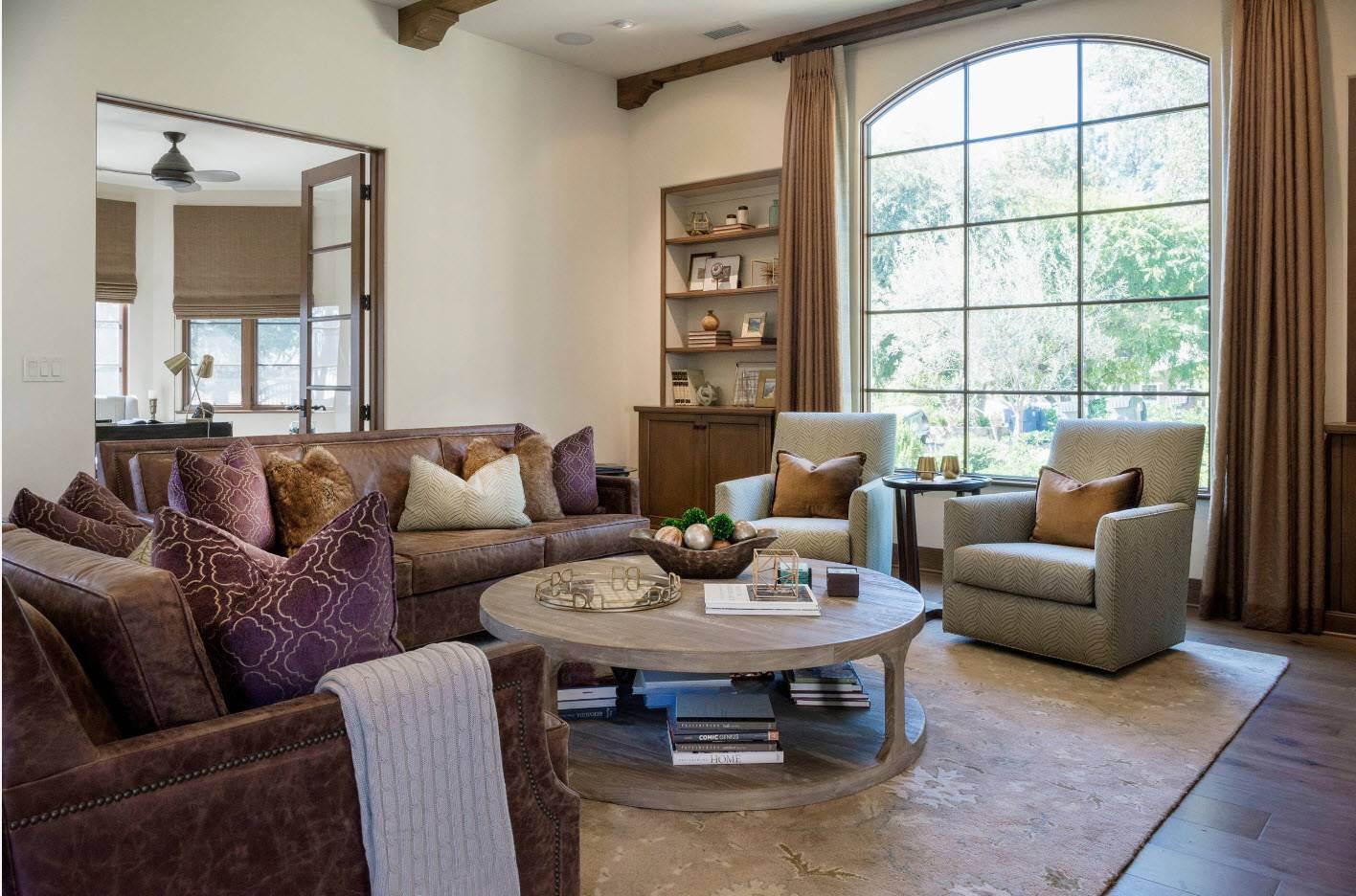 Обустройство гостиной в коричневых и бежевых тонах — это интерьер в романтическом провансальском стиле. Светлые, приглушенные цвета оптически расширяют интерьер. Провансальская атмосфера в коричневой гостиной достигается благодаря светлой мебели и стилизованным аксессуарам. Светло-коричневый цвет может доминировать в зоне отдыха, это может быть белый стол, а также мягкие, коричневые кресла и диваны.
