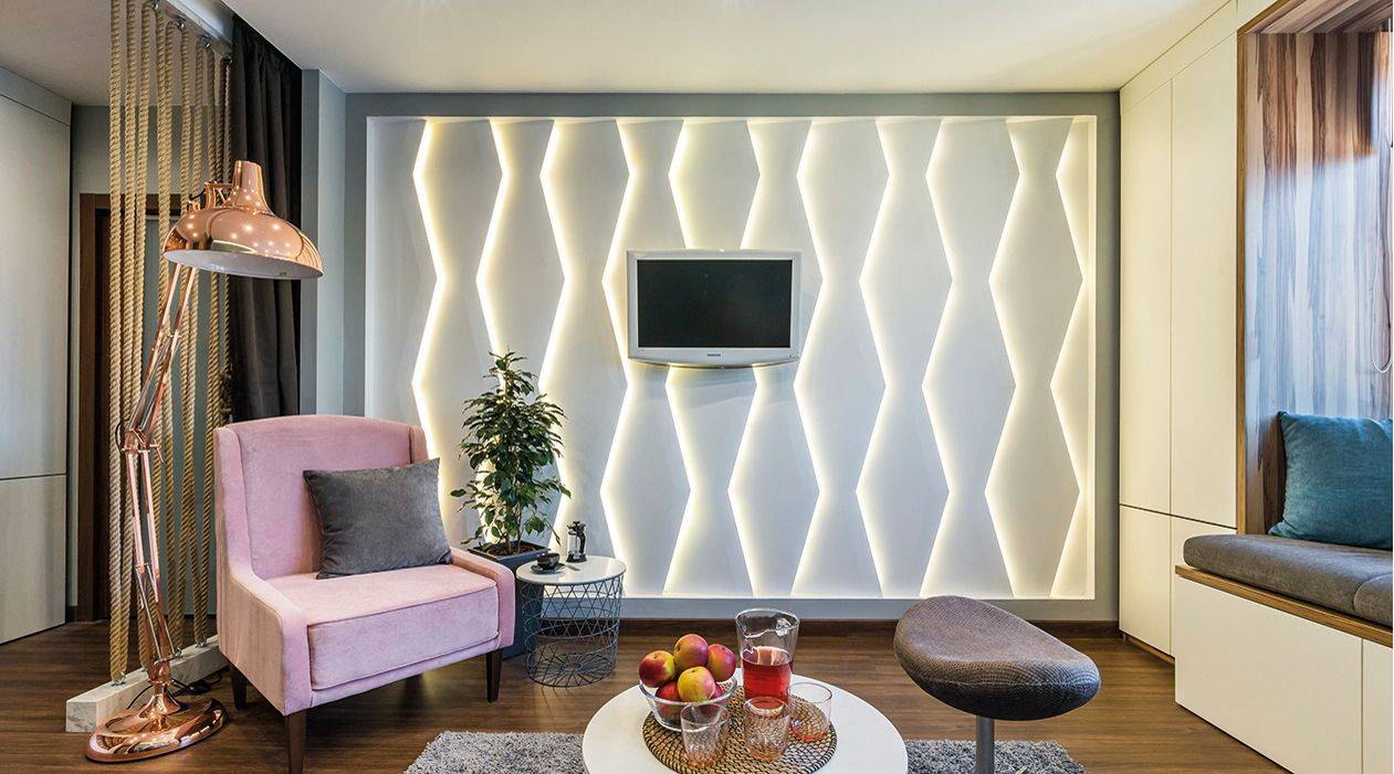 - Сочетаемость. Современные идеи оформления приветствуют комбинирование разных видов отделки. Популярное решение для любого интерьера – акцентная стена. Для неё обычно приобретают более выразительный материал; для остальных стен выбирают бюджетную отделку. Главным в таком решении будет сочетаемость цветов и/или фактур акцентной и остальных стен.