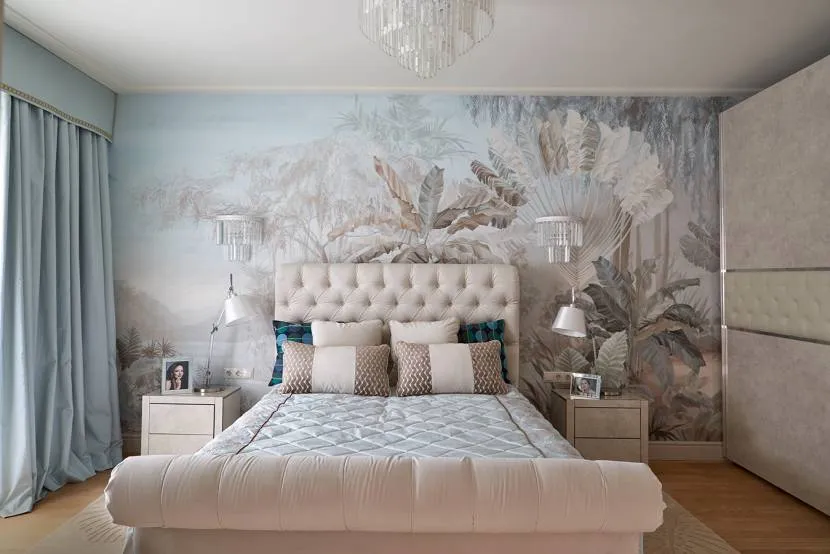 При выборе цветовой гаммы в спальне следует отдать предпочтение пастельным тонам. В комнатах с минимальным количеством естественного освещения отделку стен осуществляют материалами светлых оттенков