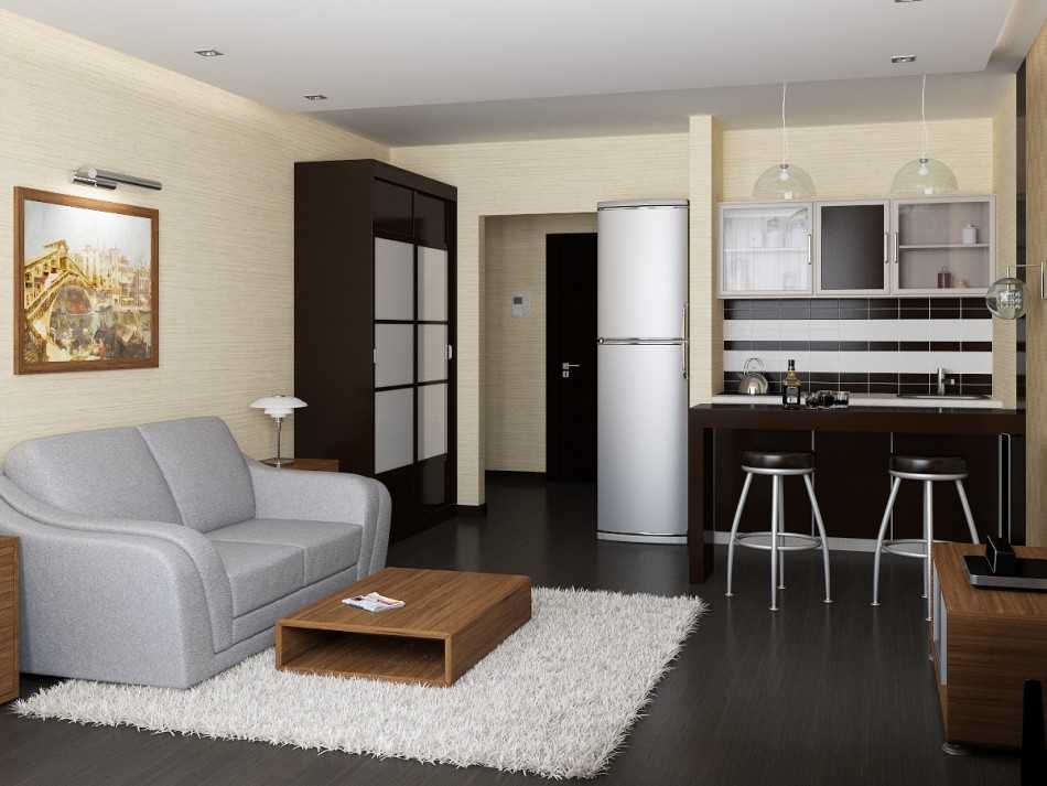 Конечно, представить, как будет выглядеть ваша скромная гостиная со спальней, довольно сложно. Но в этом помогут фотографии готовых интерьеров. Здесь вы увидите реализации интерьеров в различных стилях, хотя для небольших комнат рекомендуют выбирать лаконичные современные решения.