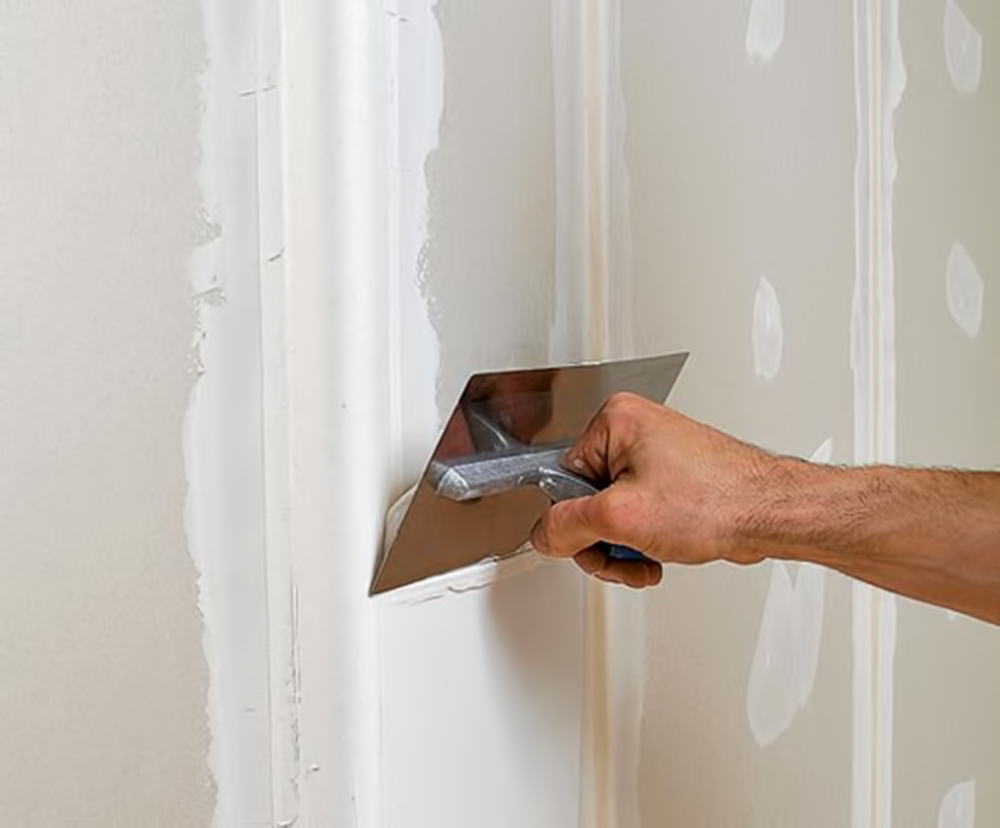 - Стыки грунтуются и заполняются шпаклёвкой при помощи шпателя.