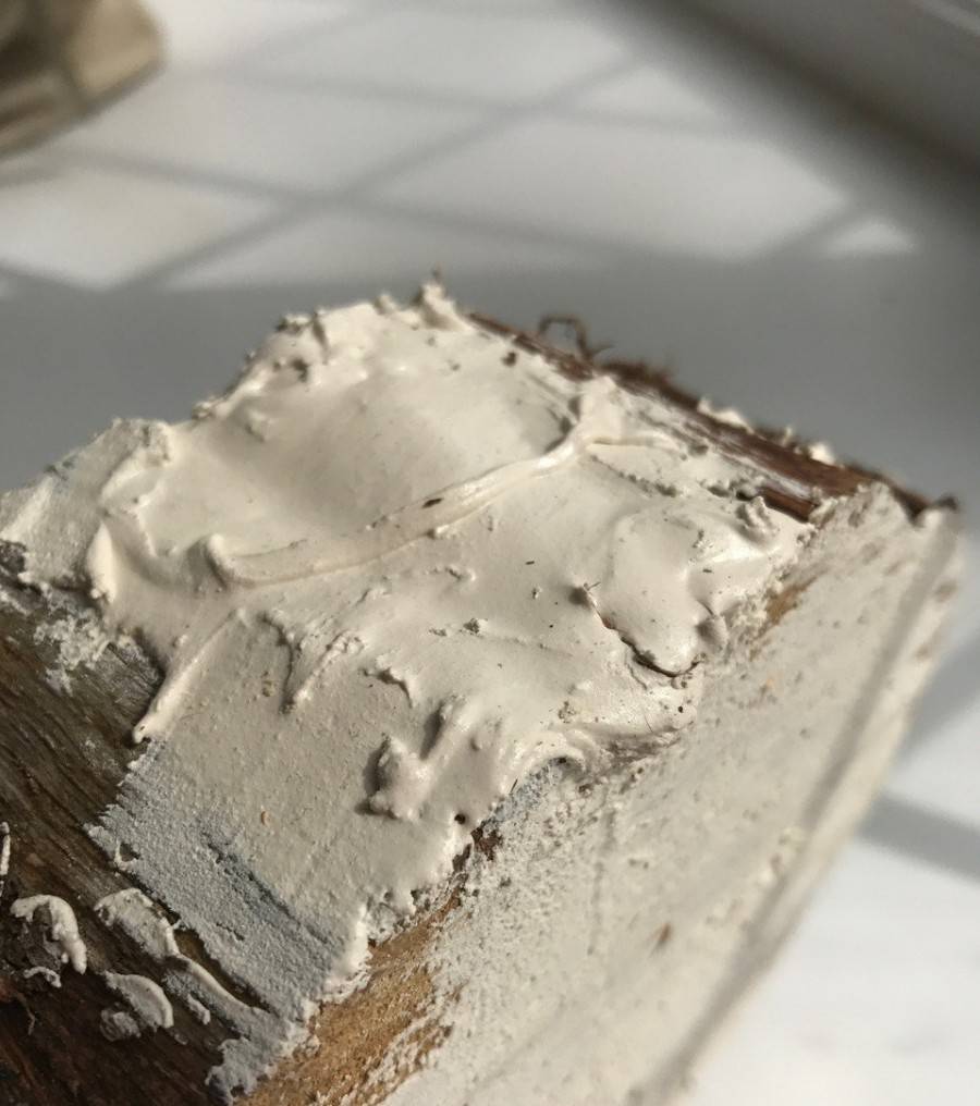 Самодельная шпатлевка идеально заполнила трещины в бруске
