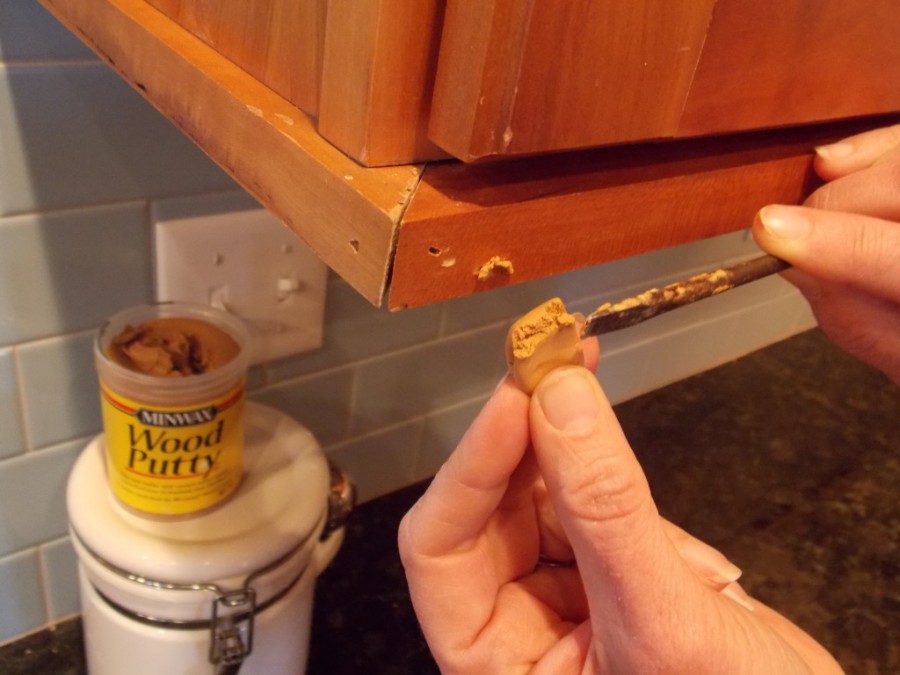 Ну, а если Вы хотите нанести поверх шпаклевки морилку, тут вам придется поработать над подбором цвета, так как шпаклевка не так сильно впитывает в себя морилку, как это происходит с краской, и цвет заделанной заплаты будет отличаться от цвета всего изделия. Среди множества цветов шпаклевки по дереву, что представлены сейчас на рынке, Вы вполне можете подобрать подходящий. Но будьте внимательны, ведь при высыхании шпаклевка может дать иной цвет. Лучше всего подобрать цвет на ненужном кусочке древесной поверхности, который будет немного влажным. С таким небольшим секретом Вам удастся как можно ближе подобрать цвет. Так же если дырка в нашей древесине внушительная, то нужно будет нанести ножиком структуру древесных волокон, чтобы сымитировать текстуру дерева. Так наша заплата получиться совсем незаметной.