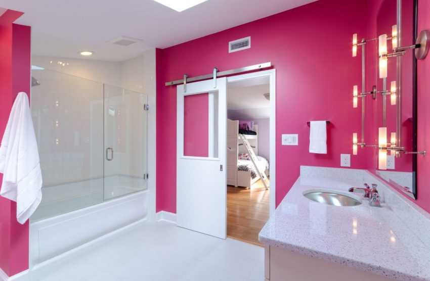 Создавая совместную ванную со спальной, важно позаботиться о защите помещения от перепадов температуры, а также высокой влажности. Чтобы избежать этого, необходимо установить вытяжку очень сильной мощности