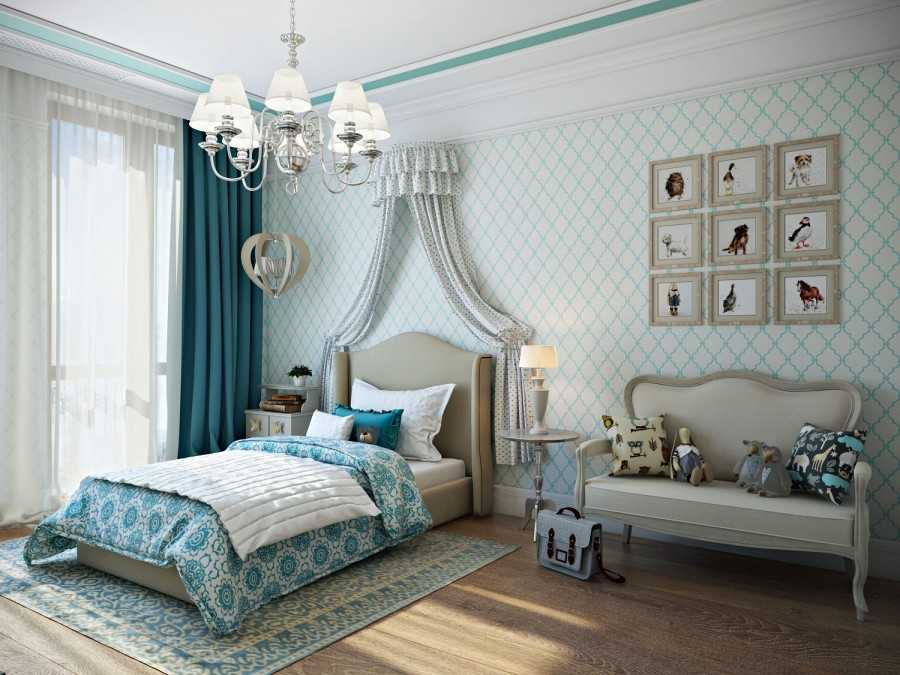Предпочтительная палитра для стен, мебели, текстиля: молочный, бежевый, серый, белый, кремовый, персиковый, мятный. Избегайте темного дерева, белые предметы интерьера уместнее — например, кровать с белым кованым изголовьем станет центром комнаты девочки.