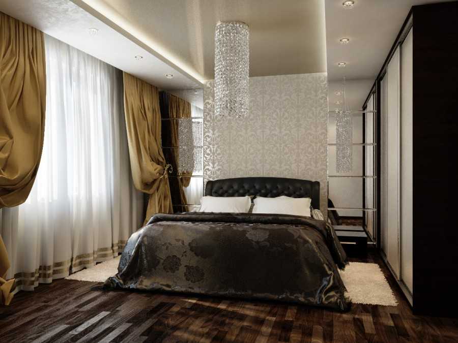 Для спален с большой площадью тёмные тона цветовой гаммы будут предпочтительнее.