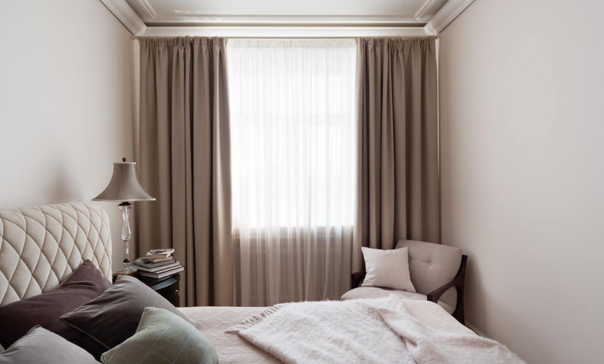 Текстиль, мебельная обивка, шторы для маленькой спальни нельзя выбирать с крупным рисунком. Рекомендуется отдать предпочтение однотонности и мелкому неяркому орнаменту.