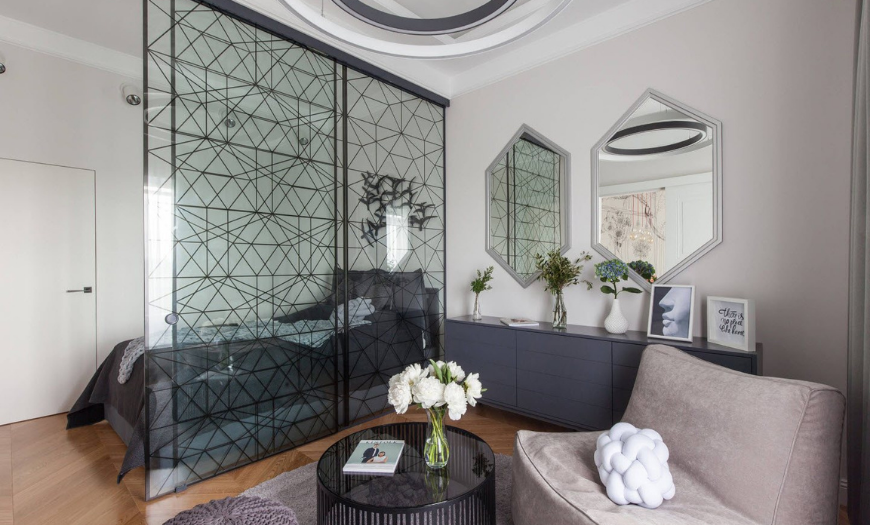 Визуальное расширение пространства. В маленьких комнатах со сложной архитектурой эффект достигается зеркалами, преобладанием светлых оттенков в мебели и отделке, правильным освещением.