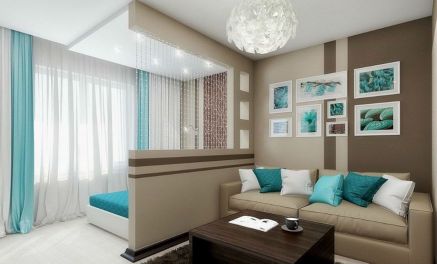 Чтобы одно помещение в квартире выполняло сразу несколько функций, его следует разделить на зоны. Используйте оттенки цвета, перегородки, портьеры, мебель.