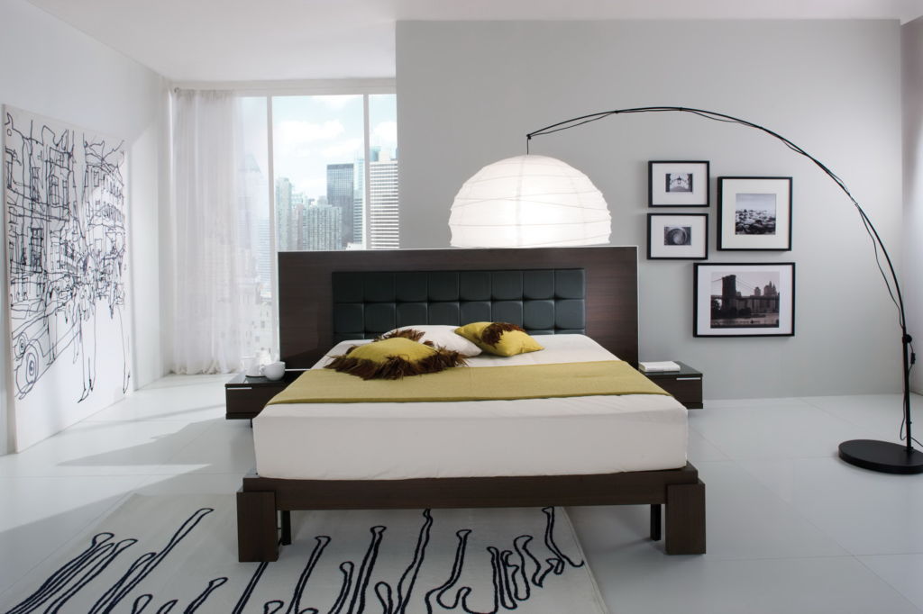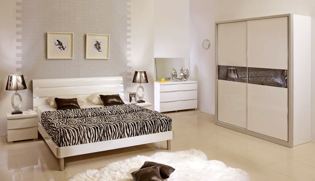 Если позволяет пространство комнаты, то на этом не обязательно ограничиваться. Прекрасно впишется в интерьер спальни зона отдыха, состоящая из дивана или кресла в комплекте с журнальным столиком. Также возможно обустройство рабочей зоны с письменным столом и удобным креслом. Для модниц подойдет большой гардероб и массивное трюмо с большим зеркалом. Уместны пуфики и подставки для ног. Считается. Что лучше всего для модерновой спальни подходят работы итальянских мастеров.