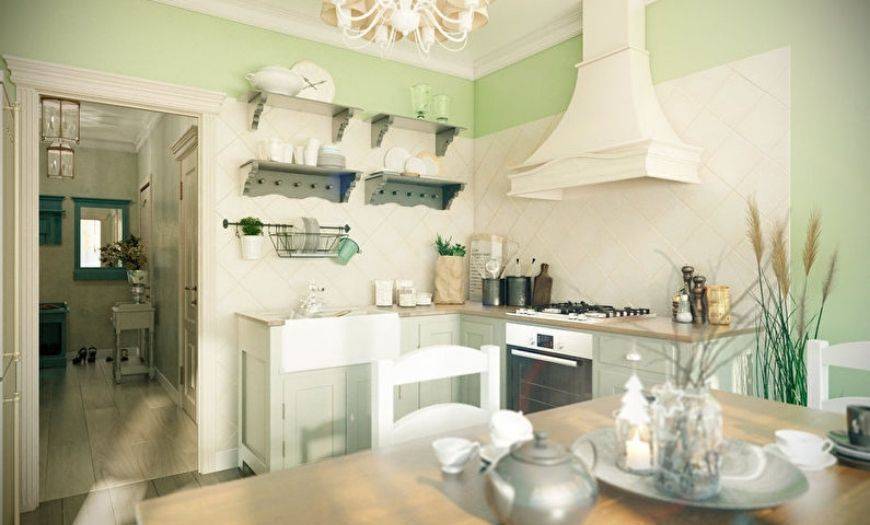 Данный стиль подходит и для маленькой кухни за счет преобладания светлых тонов, они делают помещение визуально больше.