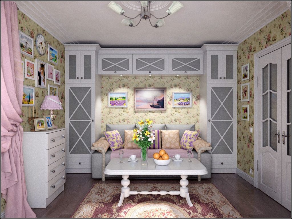 Спальни в хрущевке маленькие, и оформление их в стиле прованс нужно тщательно продумать. Стены можно оклеить обоями с изображением цветов, листьев. Если комната узкая, их лучше просто побелить. Это позволит визуально расширить пространство.