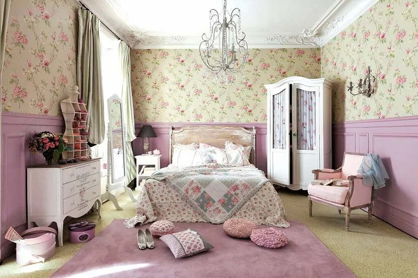 В отделке такой комнаты должны преобладать природные мотивы с изображением романтичных пейзажей. Они могут присутствовать на обоях, картинах, либо текстиле.