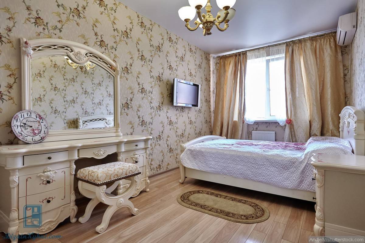 Это такая себе спальня – имитация комнаты деревенского французского домика. Для её оформления используйте кровать с металлическим изголовьем. Текстиль должен обязательно содержать цветочный орнамент. Либо фигурки ангелочков, животных, людей. Предметы мебели берутся простые, с резными фасадами. И обязательно наличие небольшой вазочки с букетом полевых цветов на туалетном столике. На кровать и кресло небрежно бросьте лёгкие цветастые пледы или подушки. Ткани в спальне стиле прованс должны быть только натуральными.