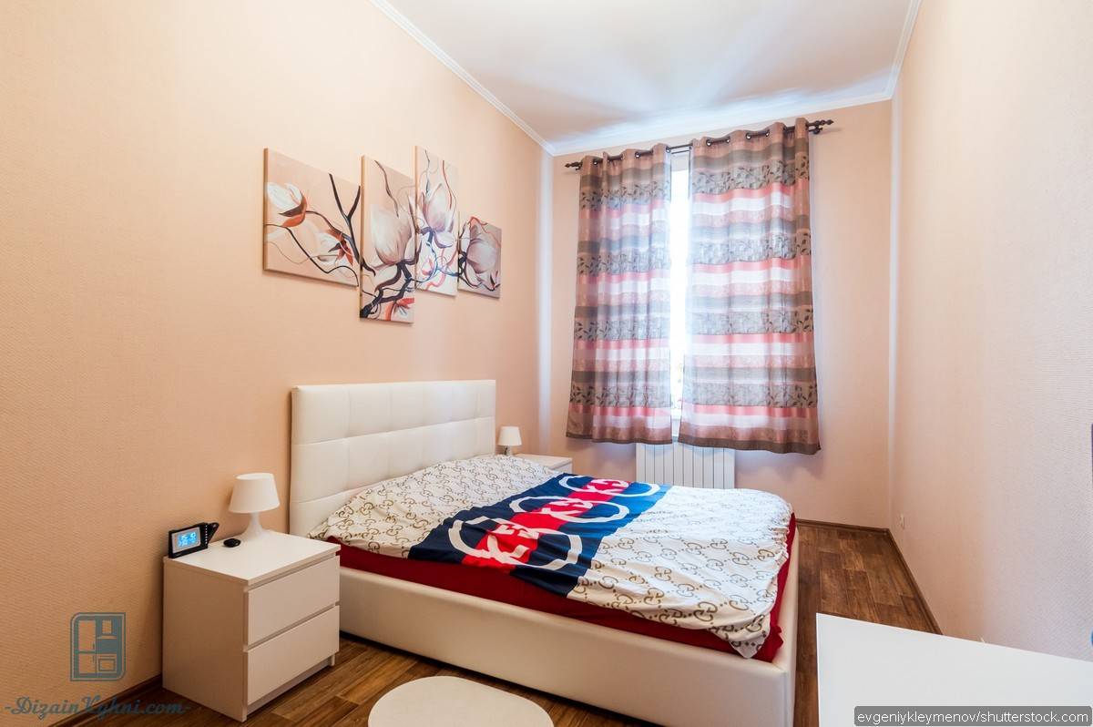 Факт! Если в узкой и длинной спальне выкрасить противоположные стены в желтый, а остальные (более длинные) сделать светлыми (кремовыми, белыми, жемчужными), то можно сделать помещение квадратным.