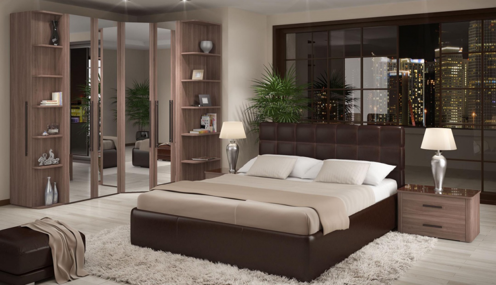Просторные помещения, как правило, редко создают проблемы с обстановкой. Сложнее обставить малогабаритные комнаты. Для них используют модульную мебель, шкафы-купе, подойдет и спальня с угловым шкафом. Эти предметы помогают экономить свободное пространство и создают максимум комфорта.