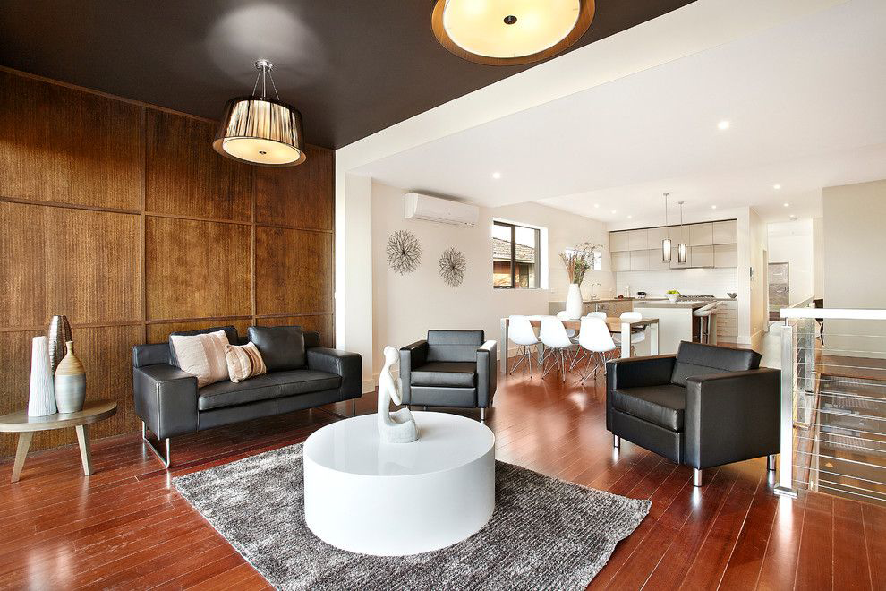 В дополнение к натуральному шпону, который сохраняет естественный рисунок зерна, также доступен модифицированный шпон. Чем он характеризуется? В процессе обработки все дефекты древесины удаляются с фанерных панелей. В результате панели имеют красивый, равномерный цвет и регулярный рисунок. Производители также предлагают различные варианты отделки. Панели для облицовки стен в гостиной могут быть защищены масляным или лаковым покрытием, гладким, матовым, полуматовым, сатиновым или глянцевым лаком.
