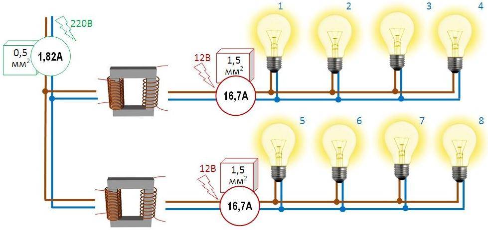 - Для изделий с лампочками 12 Вольт требуется приобретение специального понижающего трансформатора.