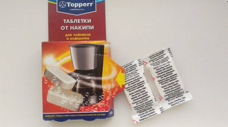 Если вы не находите нужных таблеток в продаже своего производителя, не думайте о том, чем можно заменить этот способ. Ни одна компания не выпускает чистящие средства параллельно с бытовой техникой. Они приобретают у фирм-партнеров, те же таблетки, и продают под своим названием. Поэтому подойдет любое средство для чистки кофемашины. Главное – соблюдайте пропорции, которые указываются на упаковке.