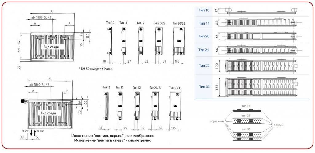 - тип 33 К. Наиболее толстая модель. Составляют ее три греющие панели и столько же конвективных решеток.