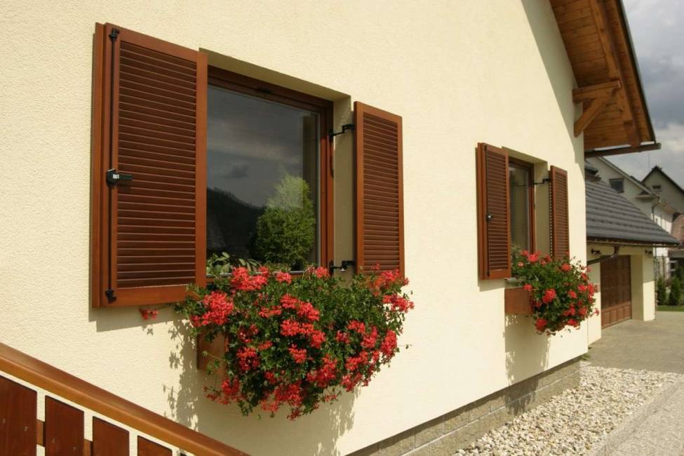 Пластиковые ставни-жалюзи отлично подчеркнут дорогой интерьер, но не будут лишними и на маленьких дачных домиках из блок-контейнеров.