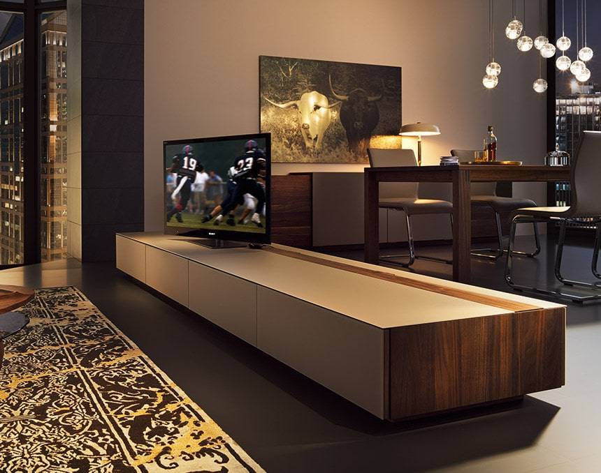 Современные тумбы под телевизор: разновидности дизайна