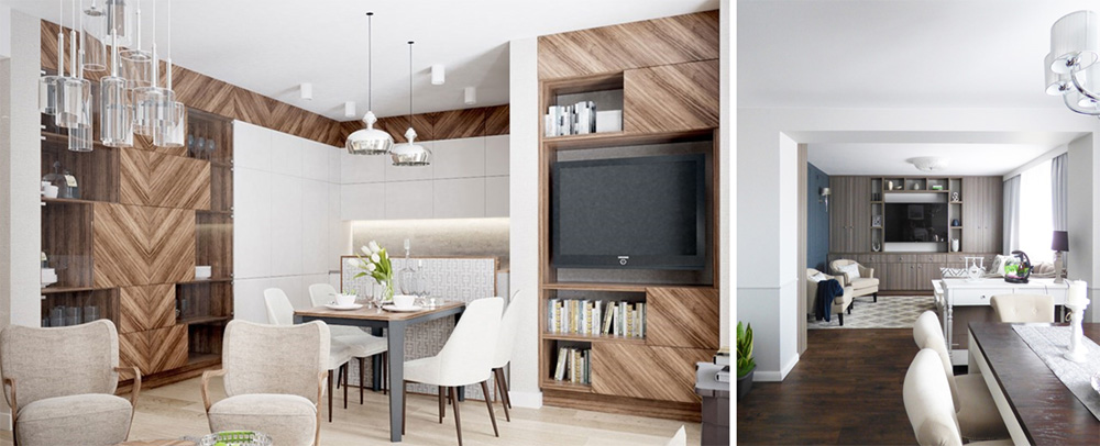 Сплошные стенки выбираются исходя из размеров помещения и, как правило, устанавливаются в просторных гостиных