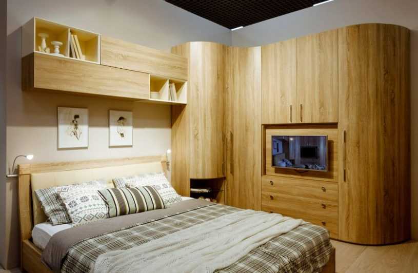 Производители мебели не смогли остаться в стороне от веяний времени и предложили собственное решение размещения шкафов над кроватью — готовую мебельную стенку с нишей под изголовьем.