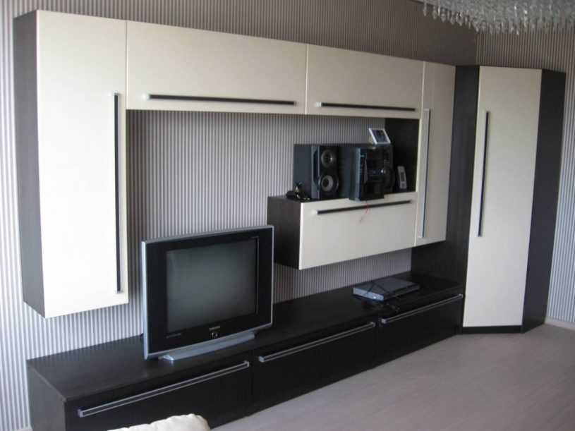 Популярные модели стенок конструируют таким образом, что можно в них вписать всю необходимую технику. Будь то компьютер или телевизор. Все зависит от запросов хозяев гостиной.