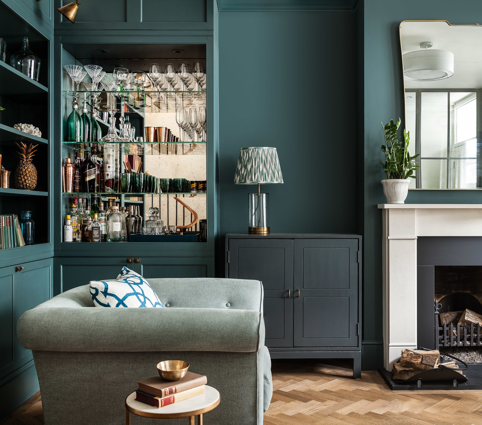Шикарный дизайн гостиной в темных пастельных тонах