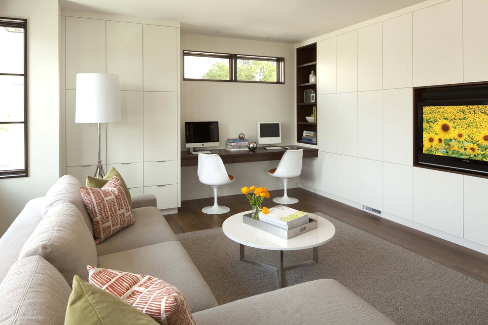 Комфортная рабочая зона в дизайне гостиной