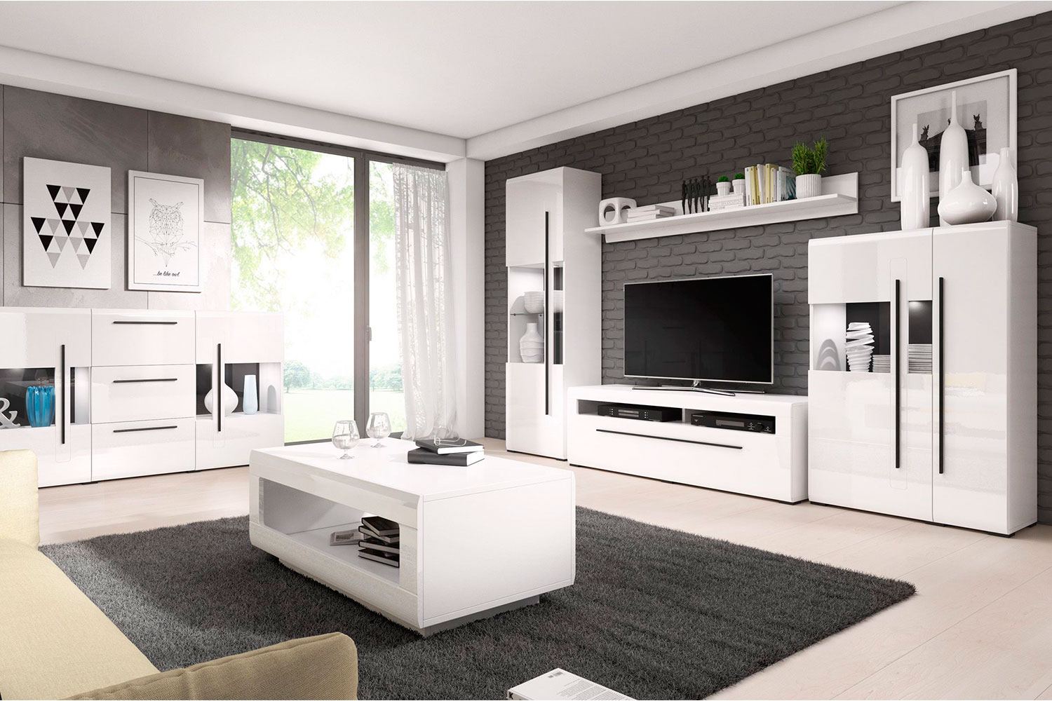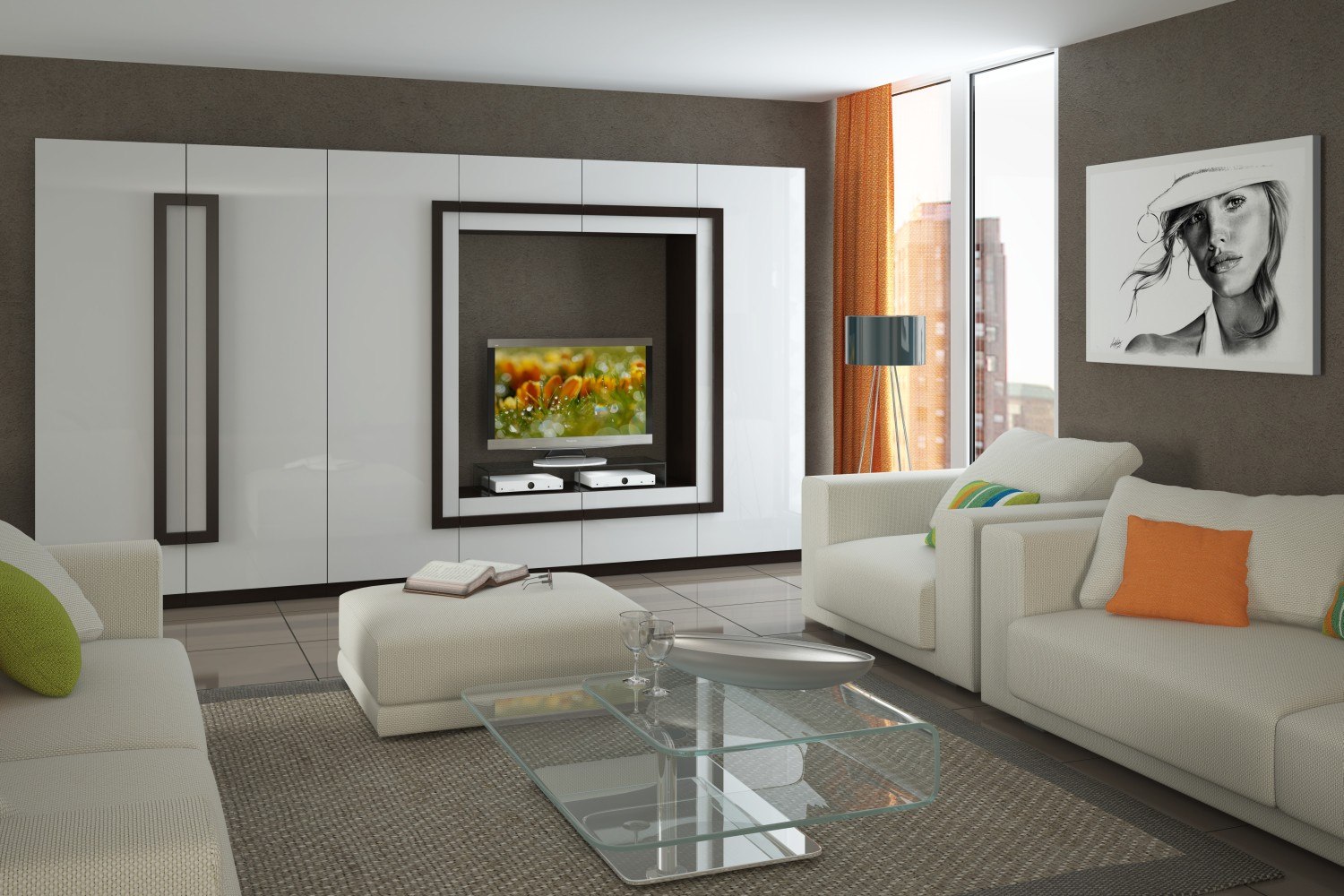 Это может быть отдельно стоящая ваза, стереосистема, телевизор. Чтобы подчеркнуть отдельные детали или весь набор мебели, используется светодиодная подсветка.